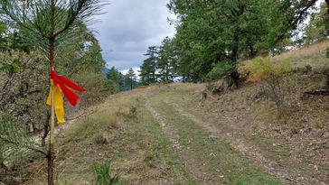 Από τη θέση Παλιομονάστηρο και για 4+χλμ μέχρι την είσοδο του μονοπατιού για τη βάλια Στάθη η κίνηση γίνεται διατηρώντας την ισοϋψή σε εγκατελειμένο δασικό δρόμο με υπέροχη θέα και σημείο με νερό πηγής, όπου η υδροληψία γίνεται από μεταλλικό σωλήνα.